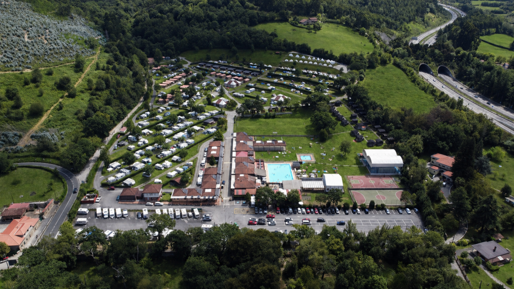 Camping de 1ª categoría ubicado en los alrededores de Gijón (cerca de la costa) con todas las comodidades: alojamientos, restaurante, supermercado, piscinas, pistas de pádel, ludoteca, parque infantil y guardería de caravanas.